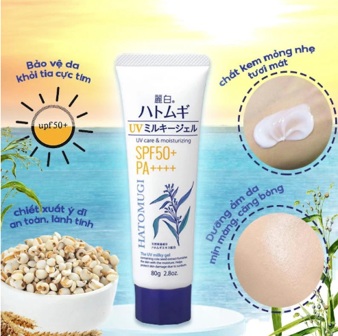 Sản phẩm thừa hưởng trọn vẹn sức mạnh từ chiết xuất Hạt Ý Dĩ (Hatomugi) – thành phần "vàng" trong bí quyết làm đẹp của phụ nữ Nhật Bản. Kết cấu dạng gel sữa mỏng nhẹ, thẩm thấu tức thì vào da, không để lại vệt trắng hay cảm giác nhờn dính khó chịu. Đây là lựa chọn lý tưởng cho những ai yêu thích lớp nền chống nắng tự nhiên, mịn mướt và căng mọng như ngậm nước.
